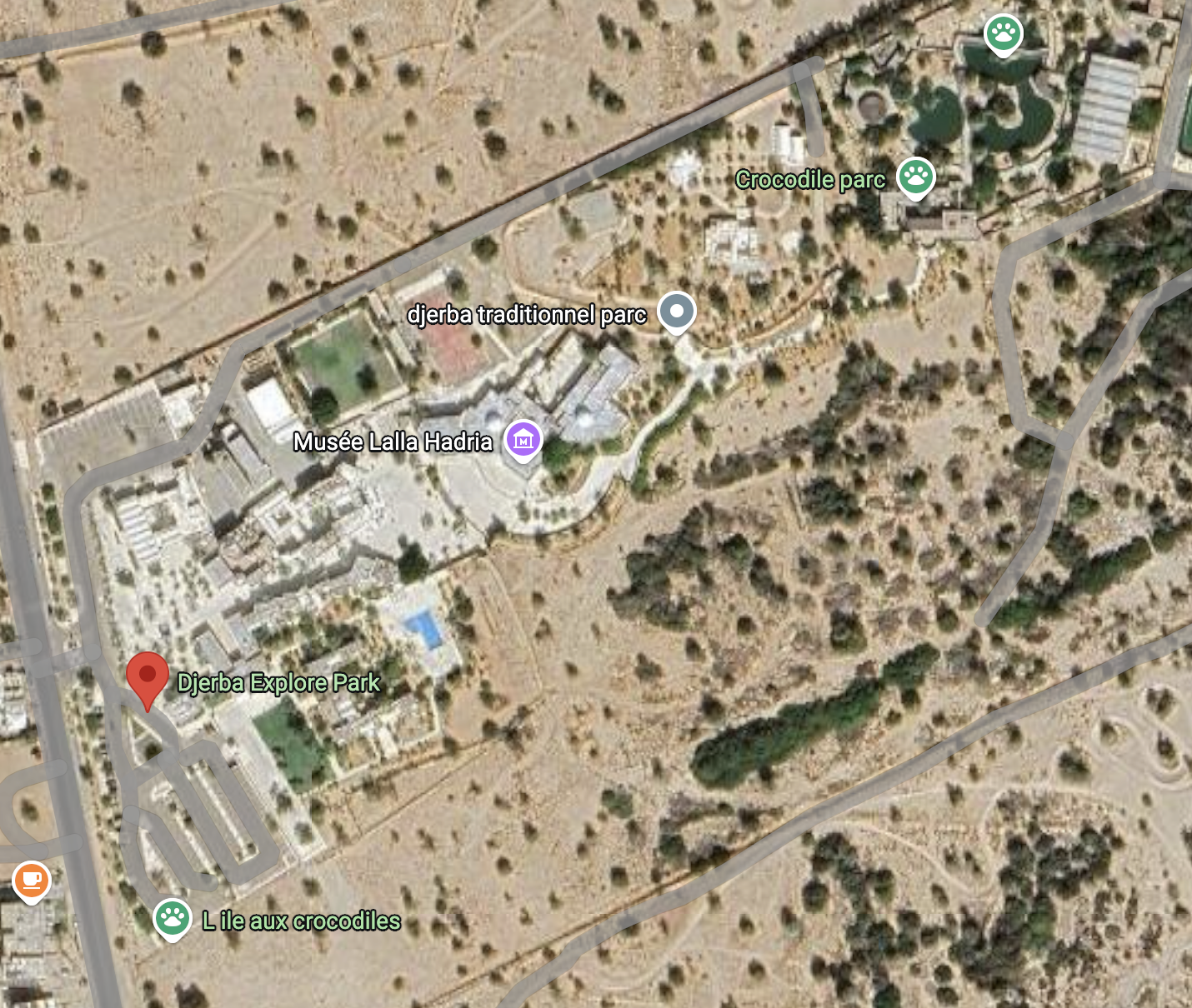 Igastahes kroku farm on meist ainult 30 min kaugusel. Koht kuhu jõudsime oli uhke ja valge, ei tundunud õige. Djerba Explore Park. Samas kirjad olid ja sees kinnitati ka. See kompleks on eest üli ilus. Suured valged hooned, täis erinevaid butiike kus leidus: kunsti, tekstiili, iluteenuseid ja söögikohti. Läbi minnes oli lõpus Lalla Hadria muuseumi hoone, kus kaudu pääsesime sisse. Pilet oli 32,50 TND täiskasvanu ja üle 4 a laps 25 TND. Ehk siis meil 4 täiskasvanu piletit tuli kokku 40€