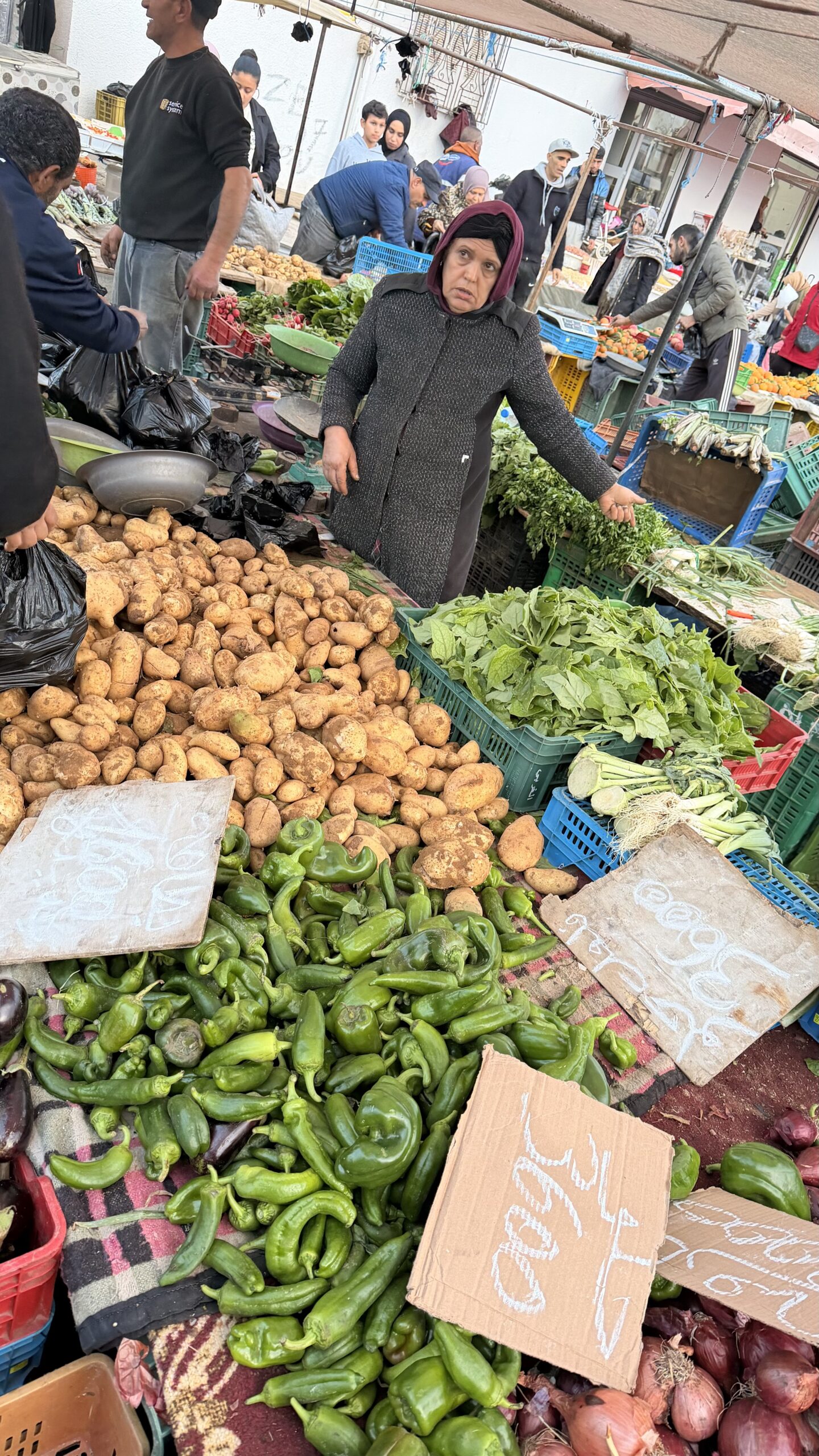 Aga sai ekseldud korralikult erinevaid külasid ja väike linnu, sihtmärgiks ikka keraamika ja Qashabiya jakk. Läbides Solayman nimelist linna, siis tundus, et selle südames on mingi suurem turg. Me ei eksinud 😀
