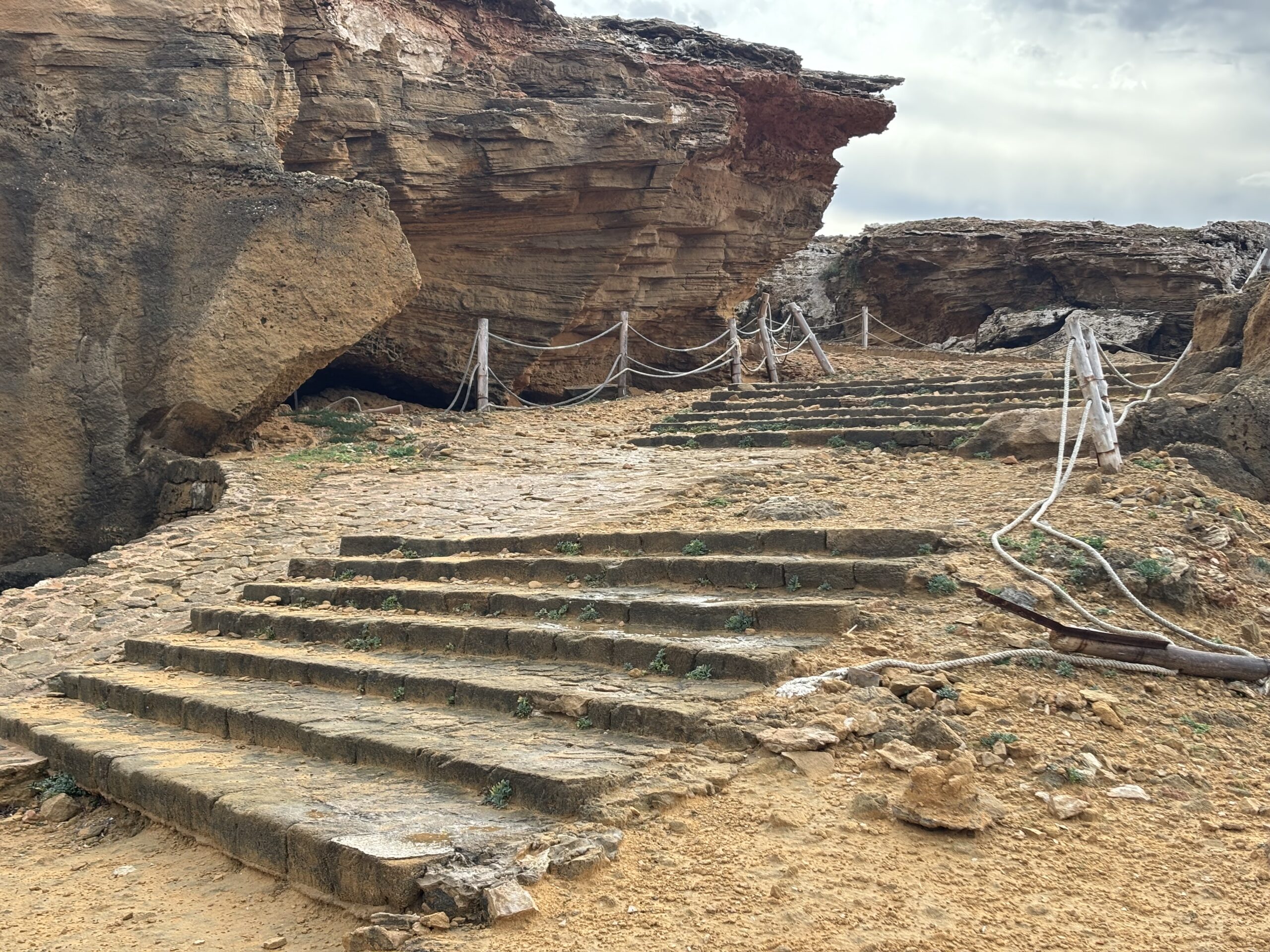 Koopad on inimtekkelised, mille ajalugu ulatub 600-200 e.m.a. (mingite andmete järgi vist isegi juba 700 e.m.a.). Orjad ja vangid kaevandasid kivi, mis seal samas mööda merd viidi eemale ehituseks ja käsitööks. Kuigi me koobaste sisse ei saanud, sest hoiatati, kuidas vihma tõttu on seal varisemis oht, siis seda kohta tundma õppides ei olnud mitte mingit huvi ka sellise ekstreemusega tegelema hakata. Koopad on sügavad ja pimedad. Kalju peal on näha trellitatud avausi, mis tõid valgust. Samal ajal kui me alguses allpool uurisime koopa sissepääse, siis kohalikud lapsed (tundus mingi klassiekskursioon) loopisid kive nende avauste peale. Heli oli ehmatav ja võimalus mõnega pihta saada oleks olnud suur.