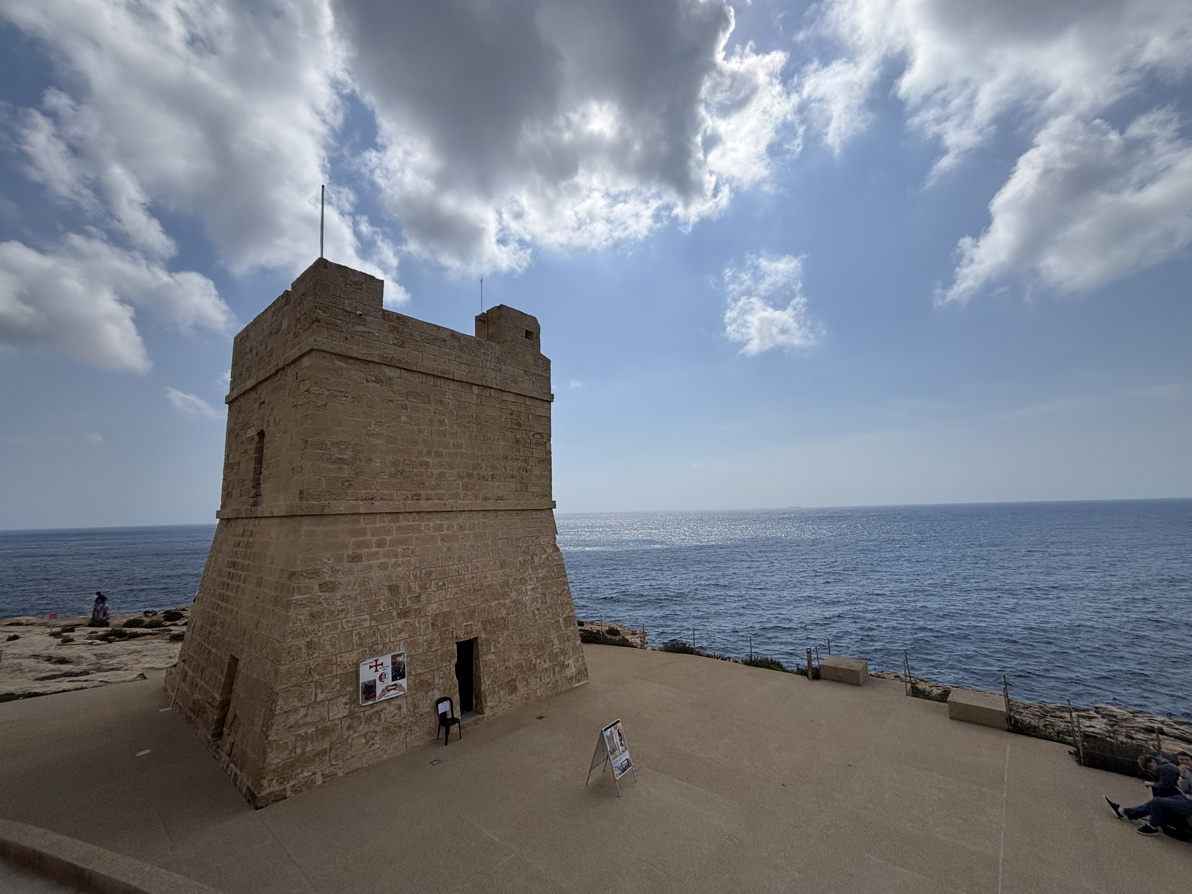 Malta rannikule ehitati 17. sajandil palju vaatetorne, et kaitsta saart merelt tulevate rünnakute eest. Neid kasutati vaenlaste jälgimiseks ja teistele tornidele signaali andmiseks tule või suitsuga. Ja kui seisad ühe juures, siis mõlemale poole vaadates näed sa järgmist. Praeguseks on alles 13 torni. Sisse saab tasuta, tore ülevaade ajaloost ja tornist hea vaade.